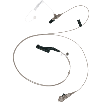 Auricular de dos cables con micrófono y PTT combinados; ofrece capacidades de transmisión y recepción, e incluye un tubo ac√∫stico transparente y punta auditiva de goma para mayor comodidad para uso prolongado.